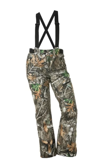 The Addie Bib/Pant is a quiet brushed waterproof/windproof fixed insulation pant in three color choices: Realtree Edge, Blaze Pink, and Blaze Orange. These pants are lightweight with only 120 grams of Polyfill insulation. Ultimate women’s waterproof hunting pants with adjustable waist tabs and suspenders available in sizes XXS – 5XL
