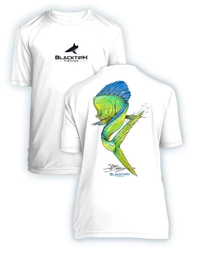 The BlacktipH Youth Performance Short Sleeve Mahi Swim shirt is a must-have for young anglers who love spending time in the water. Featuring a beautiful Steve Diossy art of a mahi-mahi fish, this shirt is sure to make a splash. The shirt is made with Screen-Tek moisture management and anti-microbial finish, which helps wick moisture away from your skin and provides odor control, keeping you fresh and comfortable all day long. Made of 3.8-ounce, 100% polyester interlock with PosiCharge technology, this shirt is not only durable but also offers advanced moisture-wicking and odor-control technology. Whether you’re swimming, surfing, or fishing, the BlacktipH Youth Performance Short Sleeve Mahi Swim shirt is a perfect choice for any water activity.