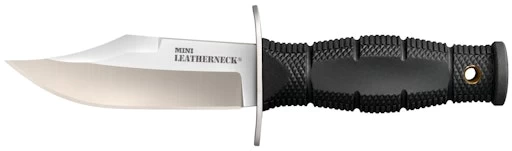 It is not the size of the dog in the fight that matters as much as the size of the fight in the dog! The Mini Leatherneck Series embodies this saying completely. Made from 8Cr13MoV steel and offered in three blade styles, each features a stainless steel guard with broad quillons to protect your fingers. The grip is made from Kray-Ex™ and is de-signed to be reminiscent of our larger Leatherneck models.These knives come with a tough, sturdy Secure-Ex™ sheath that will accommodate a bead lan-yard or a Cold Steel® C-Clip. Best of all they are economically priced.