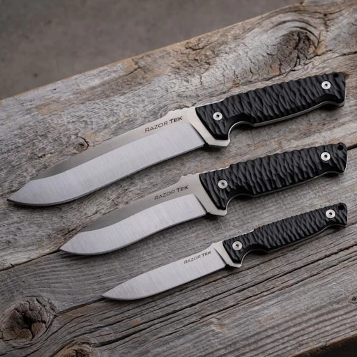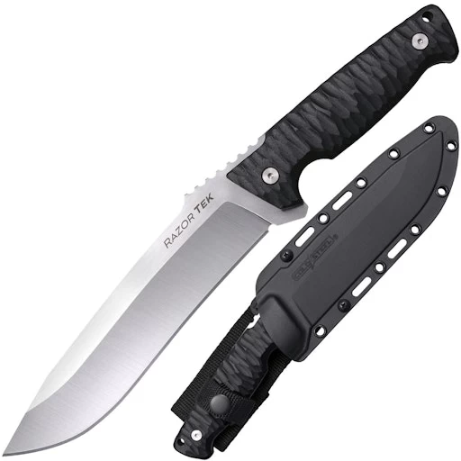 The largest in the Razor Tek series boasts a 6.5” 5mm thick recurve blade. This knife will excel in larger undertakings. The recurve blade and belly towards the front make for a great chopper. With the ergonomic and textured handle, you have a blade that is suited for your next wilderness outing. This blade will get you there and back. Includes Secure-Ex sheath