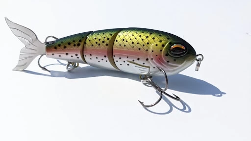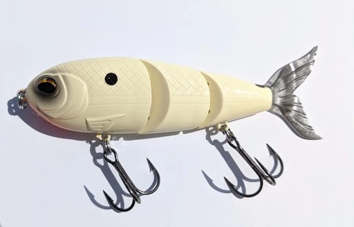 The Groovy Glide is your “does it all” swimbait solution! Start-stop cadence will give fantastic side-to-side glides and flashes, twitches will turn it, and a straight retrieve swims it like real life prey! Perfect slow sink rate, at 5″ and 1.5 ounces. Sticky Sharp VMC hooks, and replaceable tail sections.