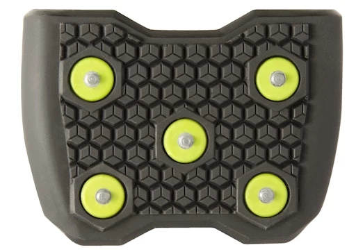 TRACTION: 10 replaceable push through steel studs for gripping traction in icy, snowy conditions. Our most minimal indoor/outdoor option pivots easily between Traction Standby position when not in use , and Traction On position when on-demand traction is needed.