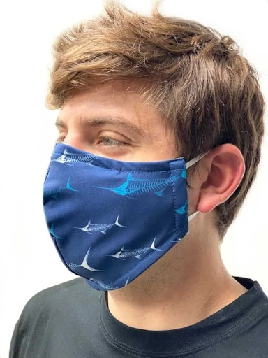 This Made in USA Hook & Tackle Men’s Marlin Express non-medical face mask complies with CDC guidelines recommending the use of cloth face coverings. It’s purpose is to stop droplets from being spread by the wearer. It also protects the wearer against airborne dust, pollen and air pollution, and provides a physical barrier to prevent the wearer from touching his mouth and nose. This contoured, reusable face mask is made from 2 layers of breathable fabric. The thoughtful design covers a large portion of the face and includes a nose wire to ensure a proper fit.
