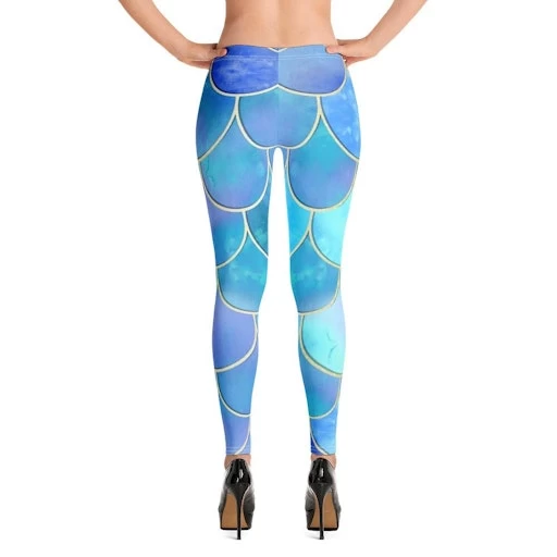 Mermaid skins are Stylish, durable, and a hot fashion staple. These polyester/spandex printed leggings are made of a comfortable microfiber yarn, and they’ll never lose their stretch. Ankle-length leggings for women are made of long-lasting super combed fabric.