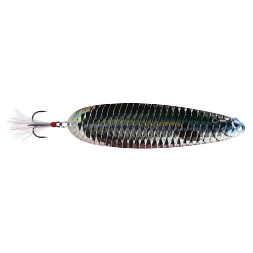The 8″ Ben Parker Magnum Spoon is a sure winner. Featuring a premium 3/0 Owner ST-36 Treble tied with Pearl Flashabou, American Made Worth Split Rings, and finished with a Size 4 Spro Power Swivel at the top, this spoon is ready to fish out of the package!