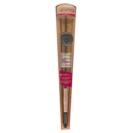 The Pflueger Fly Kit is a wonderful 8ft, three-piece fly fishing rod. These Fishing reel and rod combo by Pflueger comes with a 94 graphite fly reel, yards of level fly line, a tapered leader, and aided Dacron backing. With the Pflueger 8ft 3-Piece Fly Kit, all you need to do is add water. The Pflueger Fly Kit w/ Cork Grip has everything you need to figure out how all the pieces fit together.