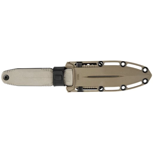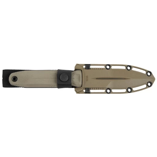 Representing an evolutionary step in hard-use fixed blade knives, Pentagon FX is a full-sized knife made for the modern-day warfighter. It features a double-edge CYRO S35VN full-tang steel blade, removable G10 handles and a GRN sheath compatible with SOG’s next-generation Universal Mounting System. It’s fully customizable to meet the demands of various missions, and purposefully designed to exceed expectations.nPart # 17-61-02-57