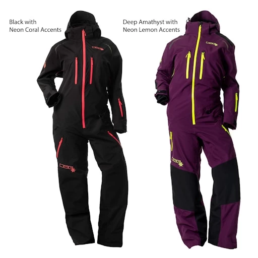Introducing the latest to the DSG snowmobile gear line up – the DSG Spectrum Monosuit! This technical monosuit has all of the features from our original monosuit and more, including Sympatex®️! Sympatex®️ is a reputable German company that demands perfection when using their materials to build outdoor apparel. Before production, samples of each piece are sent to Sympatex®️ in Germany to go through 48 hour rain chamber tests. This ensures that the waterproofing, seam sealing, and zippers of the jackets and pants are 100% waterproof and will protect customers from the elements. Backcountry and trail riding just became easier as you will stay dry and your temperature will stay regulated in this outerwear because of the finely weaved material and its breathability! This women’s monosuit comes with a drop-seat feature (perfect for when nature calls while outdoors).