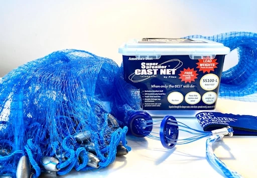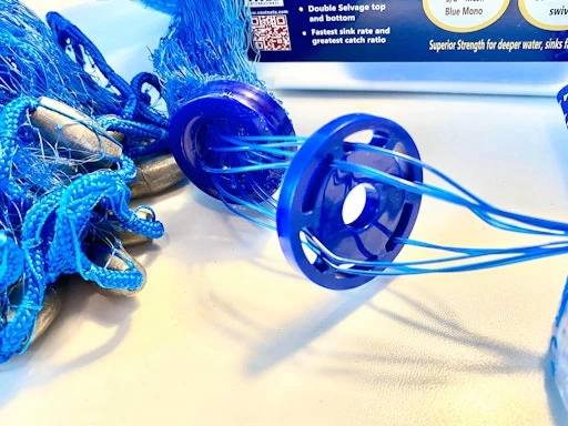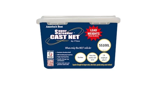 The SS-100L Super Spreader™ Blue Mono Cast Net is an all-around excellent net that will meet the needs of any cast net user. With one pound per radius foot of real lead weights, the SS Series is light enough for easy casting, yet heavy enough to sink in moderately deep waters.