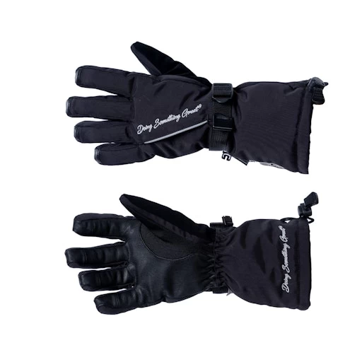 Our women’s black Trail 2.0 winter gloves have been re-designed and are back for this season! They will immediately be your favorite glove in your gear bag! Our black waterproof gloves feature a goatskin leather palm, for great comfort and feeling and are heavily insulated to keep you very warm. The back of the hand also has a pocket to add a heat pad for when temperatures are unbearable. Also on the back of the hand is Cordura reflective material that is ideal for giving hand signals while riding snowmobiles at night. Did we mention this women’s snow glove is all black giving it a timeless look that will match any gear? The gauntlet is nice and big to go over your jacket sleeve and keep the wind out.