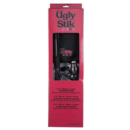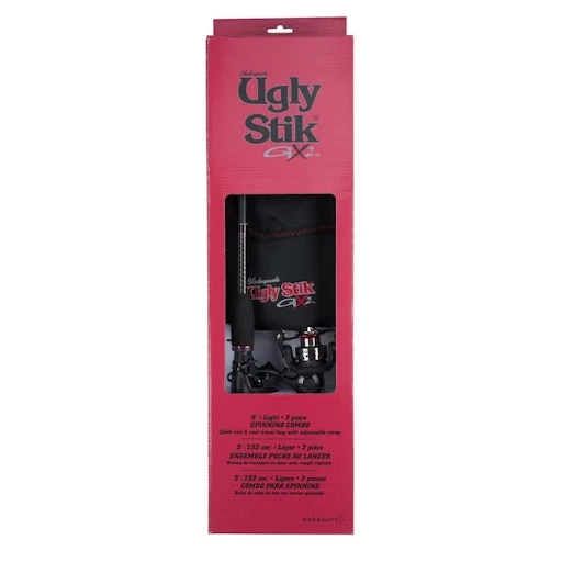 Ugly Stik® GX2™ pack spinning combos provide the ultimate combination of durability and convenience. Enjoy fishing anywhere you go with this portable combo. Comes with a cloth rod and reel travel bag with adjustable straps. These combos feature Ugly Tech™ construction Ugly Tuff™ guides and the Ugly Stik® Clear Tip® design.