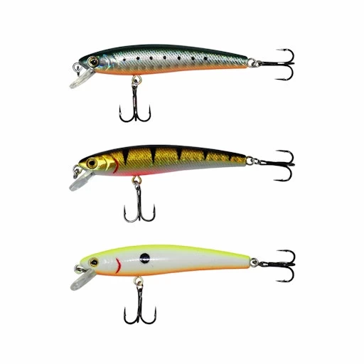 The UltraLite Jerkbait 3 Pack features three different 1/8 oz. 2.5″ Floater/Diver Series Fishing Lures.