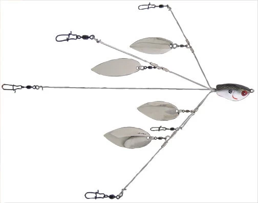 More flash equals more fish. The YUMbrella Flash Mob 5-wire multi-bait rig has all of the features that made the YUMbrella the leader in the category – super tough stainless steel, heat treated wire, strong snaps and swivels and one of the toughest wire connections in the industry – and adds four willow blades midway down each outer arm to produce tremendous flash and vibration and create the image of a bigger school of baitfish.